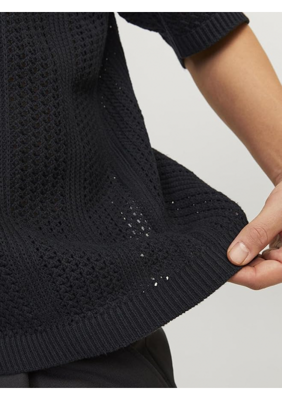 Luźny dzianinowy model, który sprawdzi się zarówno w weekendy z jeansami, jak i w biurze, nakładając go na koszulę i spodnie.