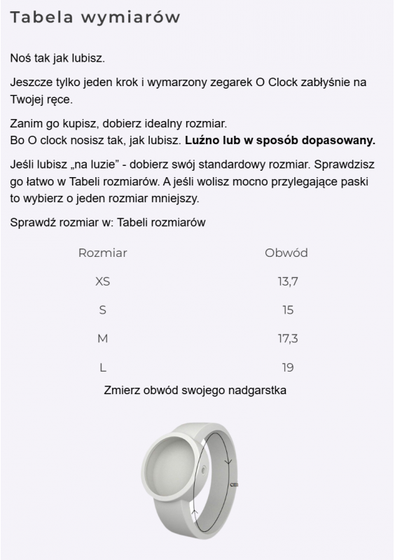 Zegarek O clock great rozmiar L obwód 19 cm