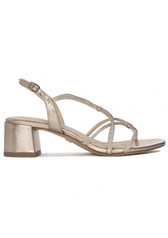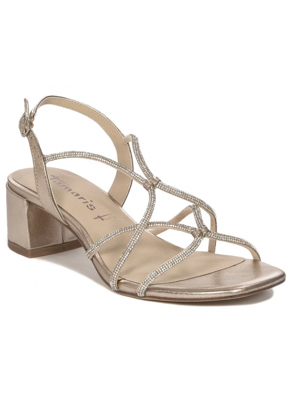 Tamaris Sandały Damskie Skórzane Na Słupku Złote
