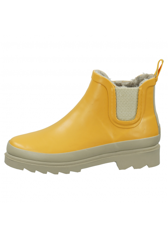Kalosze w stylu Chelsea, które są modnym dodatkiem w każdych warunkach pogodowych. Materiał wierzchni jest wodoodporny dzięki zastosowaniu prawdziwej gumy z elastycznymi wstawkami. Futrzana podszewka gwarantuje ciepło i przytulność stóp, a wkładkę można wyjąć. Profilowana podeszwa w kontrastowym kolorze zapewnia dodatkową przyczepność.