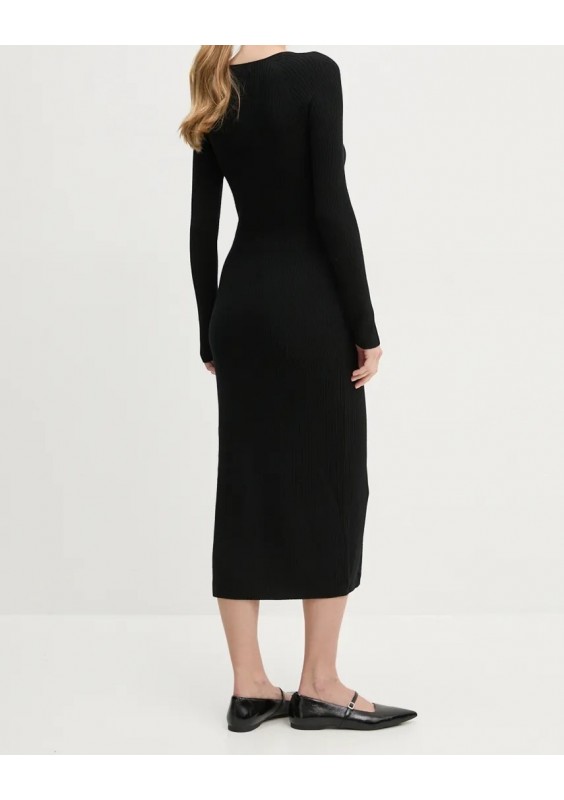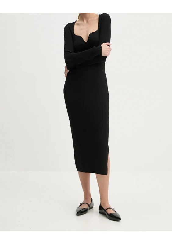 FROM FUTURE sukienka wełniana kolor czarny midi dopasowana WRO01469