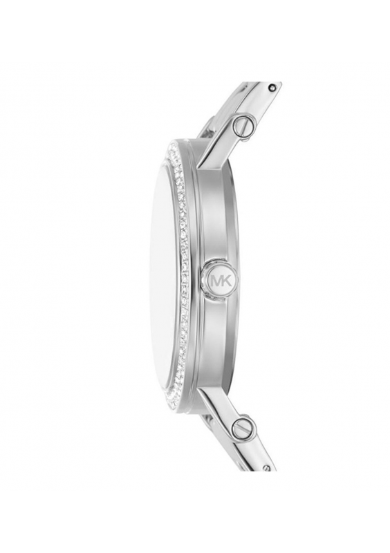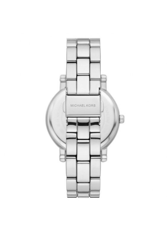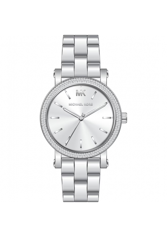 Zegarek Corey jest uosobieniem codziennej elegancji. Jego konstrukcja obejmuje klasyczną bransoletę ze stali nierdzewnej, błyszczącą ramkę wysadzaną pavé i wyrafinowaną tarczę z wytłoczeniem MK